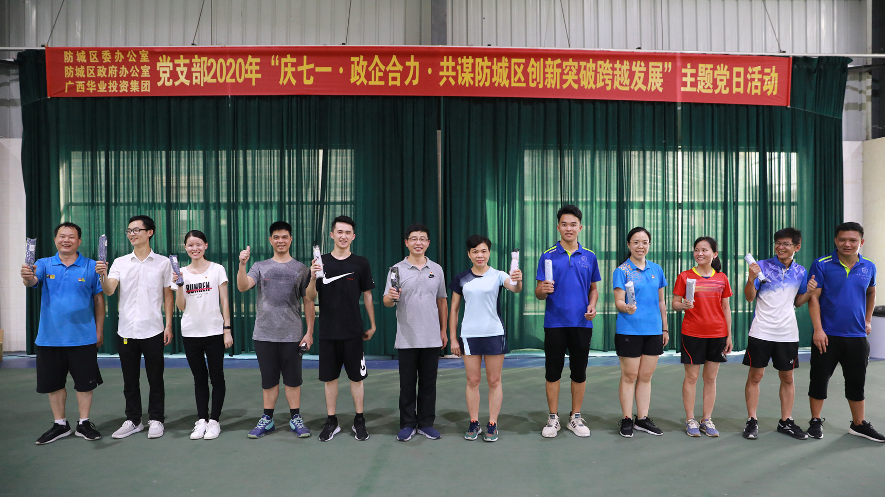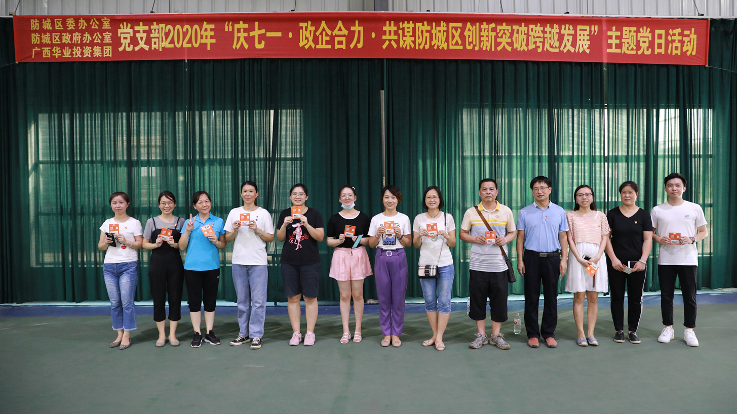 2020年7月3日下午,華業(yè)集團(tuán)黨支部與防城區(qū)委辦、政府辦黨支部在華業(yè)城聯(lián)合開(kāi)展“慶七一·政企合力·共謀防城區(qū)創(chuàng)新突破跨越發(fā)展”主題黨日活動(dòng)。雙方共100多人齊聚一堂,通過(guò)參觀黨建展廳、開(kāi)展黨建知識(shí)競(jìng)答、猜紅歌比賽等黨建活動(dòng)及氣排球比賽等方式熱烈慶祝中國(guó)共產(chǎn)黨成立99周年,為深化政企合作,推動(dòng)防城區(qū)創(chuàng)新突破、跨越發(fā)展貢獻(xiàn)力量。