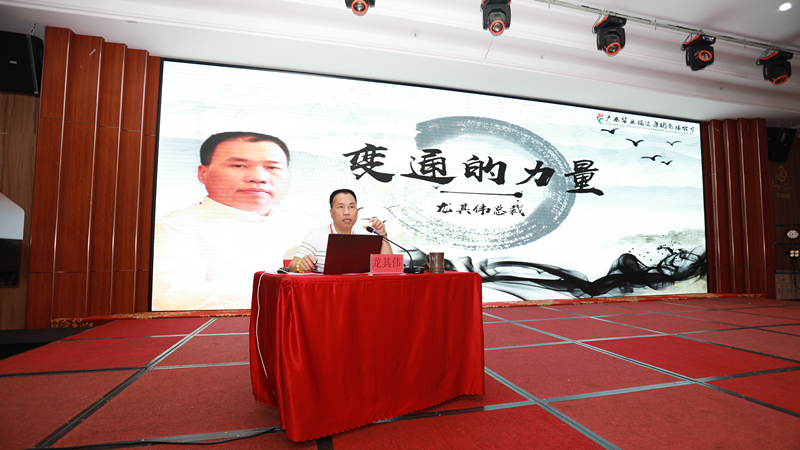講堂上,龍其偉總裁引用《周易》中的經典名句“窮則變、變則通、通則久”開篇,結合自身的經歷及華業(yè)集團的發(fā)展歷程,講述了華業(yè)集團在面對困境和機遇時,如何利用變通的力量在危機中抓住機遇、打開局面,深刻闡述了“變通的力量”在工作和生活中的重要意義。
