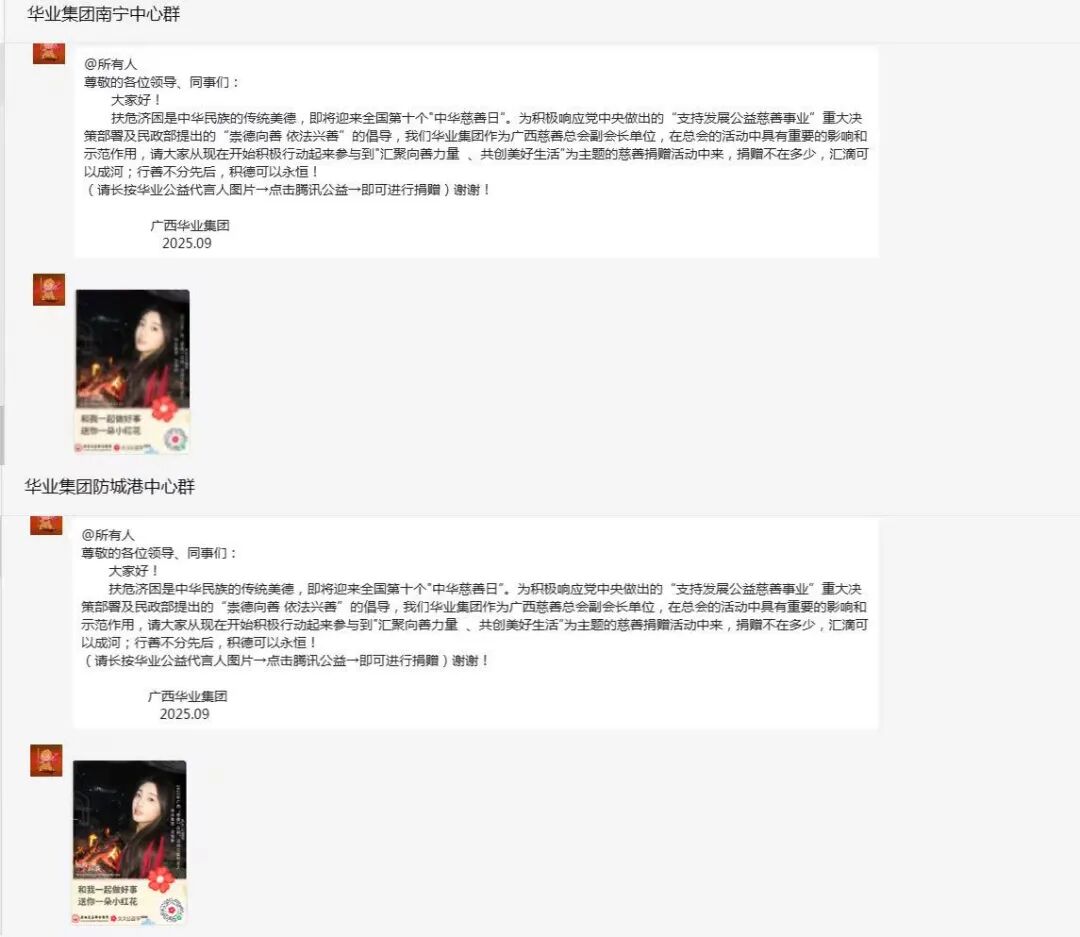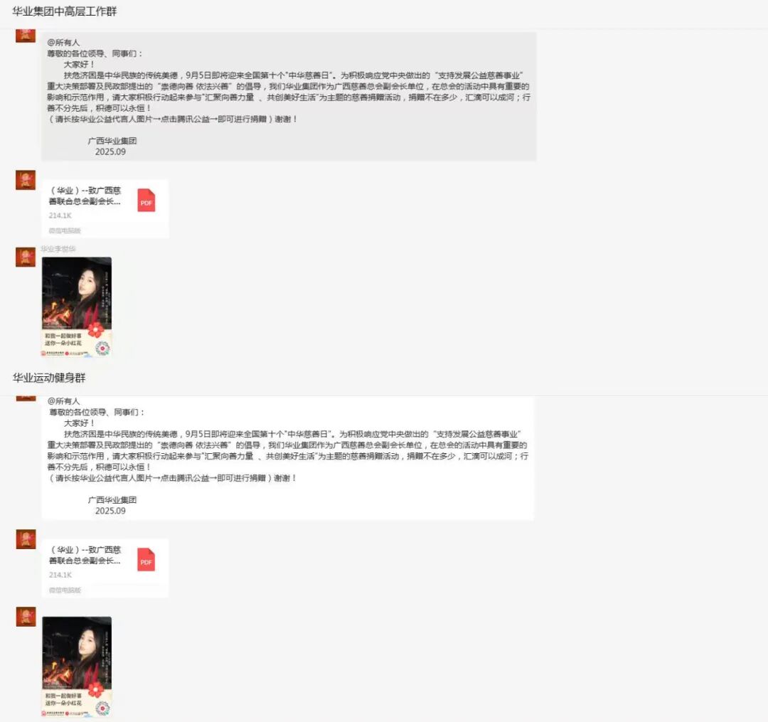 活動(dòng)期間,華業(yè)集團(tuán)積極宣傳動(dòng)員,通過(guò)內(nèi)部會(huì)議、企業(yè)微信工作群、微信公眾號(hào)等平臺(tái)發(fā)布廣西慈善聯(lián)合總會(huì)活動(dòng)倡議書及企業(yè)公益代言人募捐二維碼,構(gòu)建“線上+線下”捐款助力雙通道,連續(xù)多日引導(dǎo)員工通過(guò)掃碼捐贈(zèng)、集中募捐等形式參與活動(dòng),員工參與率達(dá)98%,形成全員參與慈善熱潮。