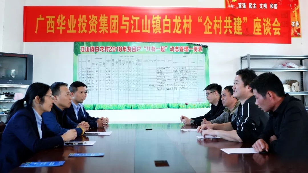 華業(yè)集團(tuán)總裁龍其偉和白龍村駐村第一書記黃景燦、黨支部書記江朝鋒及部分村委成員,就如何改變防城區(qū)江山鎮(zhèn)白龍村貧困戶現(xiàn)狀,加快脫貧致富步伐,實(shí)現(xiàn)白龍村全體村民共同富裕展開了座談交流,龍其偉總裁提出:扶貧不能僅靠捐錢捐物,更重要的是要帶動(dòng)貧困戶從思想上、產(chǎn)業(yè)開發(fā)上、就業(yè)出路上全方位開展扶貧工作,增強(qiáng)貧困戶自力更生謀發(fā)展的能力,從根源上摘掉貧困帽子,共同推動(dòng)實(shí)現(xiàn)全面建設(shè)小康社會(huì)的目標(biāo)。