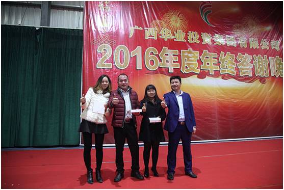大會(huì)結(jié)束后,大家歡聚一堂舉行2016年度年終答謝晚宴。晚宴設(shè)席三十二臺(tái),受邀嘉賓有華業(yè)的各合作伙伴、廣西精一律師事務(wù)所的伙伴們。華業(yè)今天的模樣,離不開社會(huì)各界朋友的關(guān)心和支持,所有的感謝都記在心里,所有的歡樂都融入美酒佳肴中。