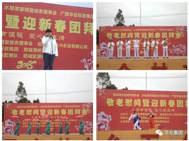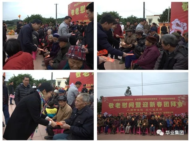 2018年2月4日,在新春佳節(jié)即將來(lái)臨之際,廣西華業(yè)投資集團(tuán)與防城港市武威慈善協(xié)會(huì)、水坡廖家祠堂常務(wù)理事會(huì)在灘營(yíng)鄉(xiāng)石合村舉行了“敬老慰問(wèn)暨迎新春團(tuán)拜會(huì)”活動(dòng),人間有溫暖,愛(ài)心顯真情!華業(yè)投資集團(tuán)副總裁廖人興、副總裁龐樹(shù)玉、工會(huì)主席鐘麗霞及集團(tuán)代表參加了此次活動(dòng),讓當(dāng)?shù)厝罕娺^(guò)上了一個(gè)溫暖的冬季,過(guò)一個(gè)幸福的春節(jié)。
