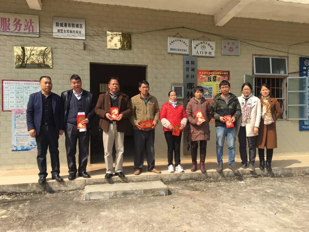 2018年2月6日,廣西華業(yè)集團(tuán)攜手防城區(qū)工商聯(lián)到灘營(yíng)鄉(xiāng)那林村,開(kāi)展貧困村、貧困戶和扶貧村委干部慰問(wèn)活動(dòng)。防城區(qū)工商聯(lián)主席陳如海,區(qū)委統(tǒng)戰(zhàn)部副部長(zhǎng)、工商聯(lián)黨組書記鐘憲棠和廣西華業(yè)投資集團(tuán)總裁龍其偉、工會(huì)主席鐘麗霞一行參加慰問(wèn)活動(dòng),把溫暖帶到了灘營(yíng)鄉(xiāng)那林村,給村委帶來(lái)嶄新的電腦和打印機(jī),給貧困戶和村兩委干部送上了慰問(wèn)物資和慰問(wèn)金。