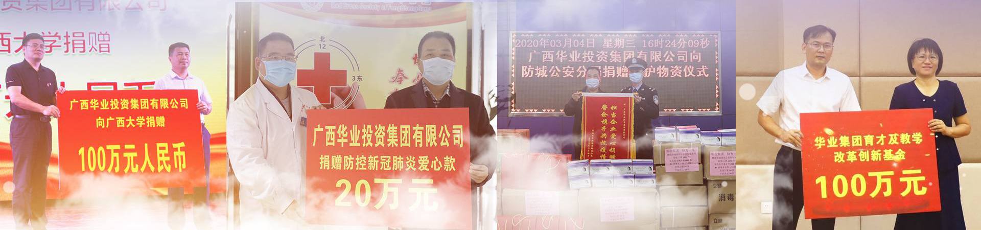 華業(yè)集團(tuán)以履行社會(huì)責(zé)任為己任的理念贏得了社會(huì)各界的肯定,先后獲得“自治區(qū)統(tǒng)戰(zhàn)部2020年‘抗疫先進(jìn)單位’”“2019年廣西‘萬(wàn)企幫萬(wàn)村’精準(zhǔn)扶貧行動(dòng)‘先進(jìn)民營(yíng)企業(yè)’”“廣西統(tǒng)一戰(zhàn)線脫貧攻堅(jiān)先進(jìn)單位”“紅十字天使計(jì)劃博愛(ài)救心八桂行愛(ài)心單位”“支持共青團(tuán)工作先進(jìn)單位”“情系家鄉(xiāng)教育”“模范職工之家”“防城港市愛(ài)心企業(yè)”“防城港市社會(huì)公益慈善事業(yè)突出貢獻(xiàn)單位”等榮譽(yù)稱(chēng)號(hào)。